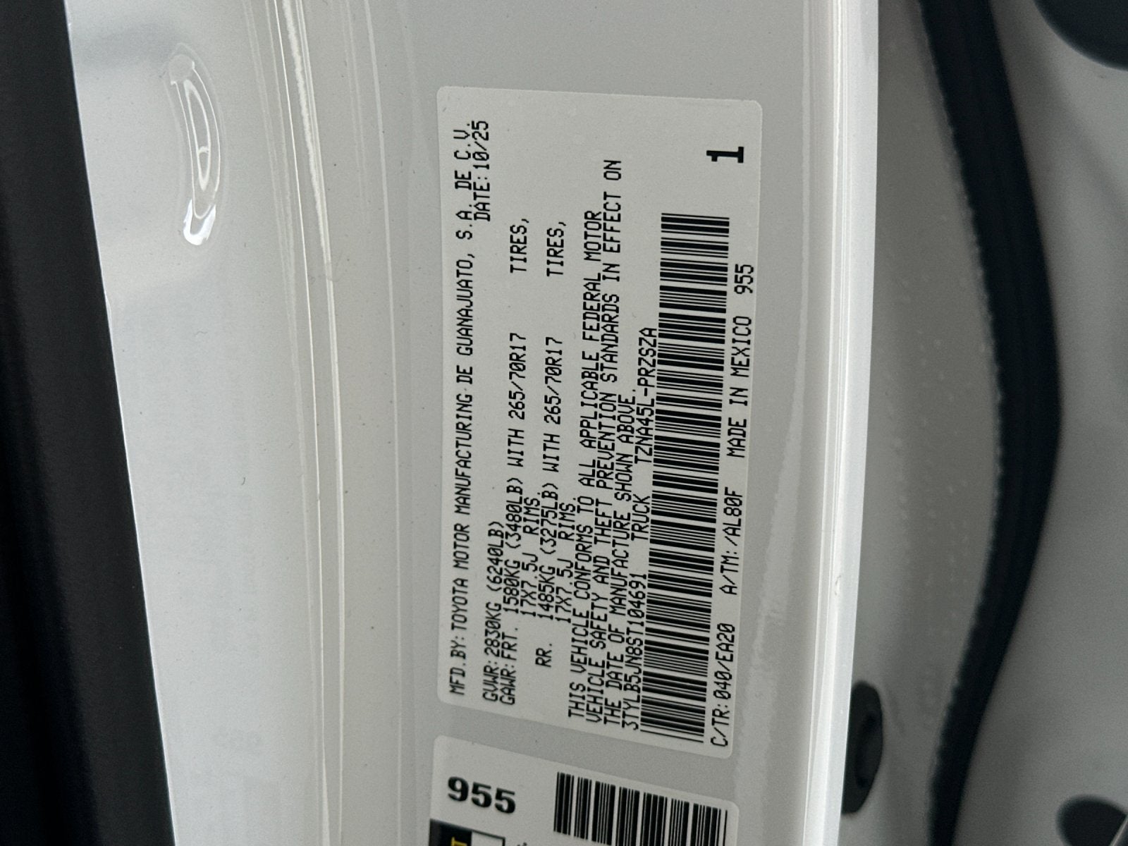 - Front Tire Size: P265/70TR17