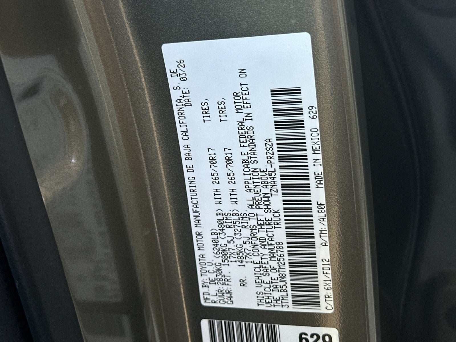 - Vehicle Name: Toyota Tacoma 4WD