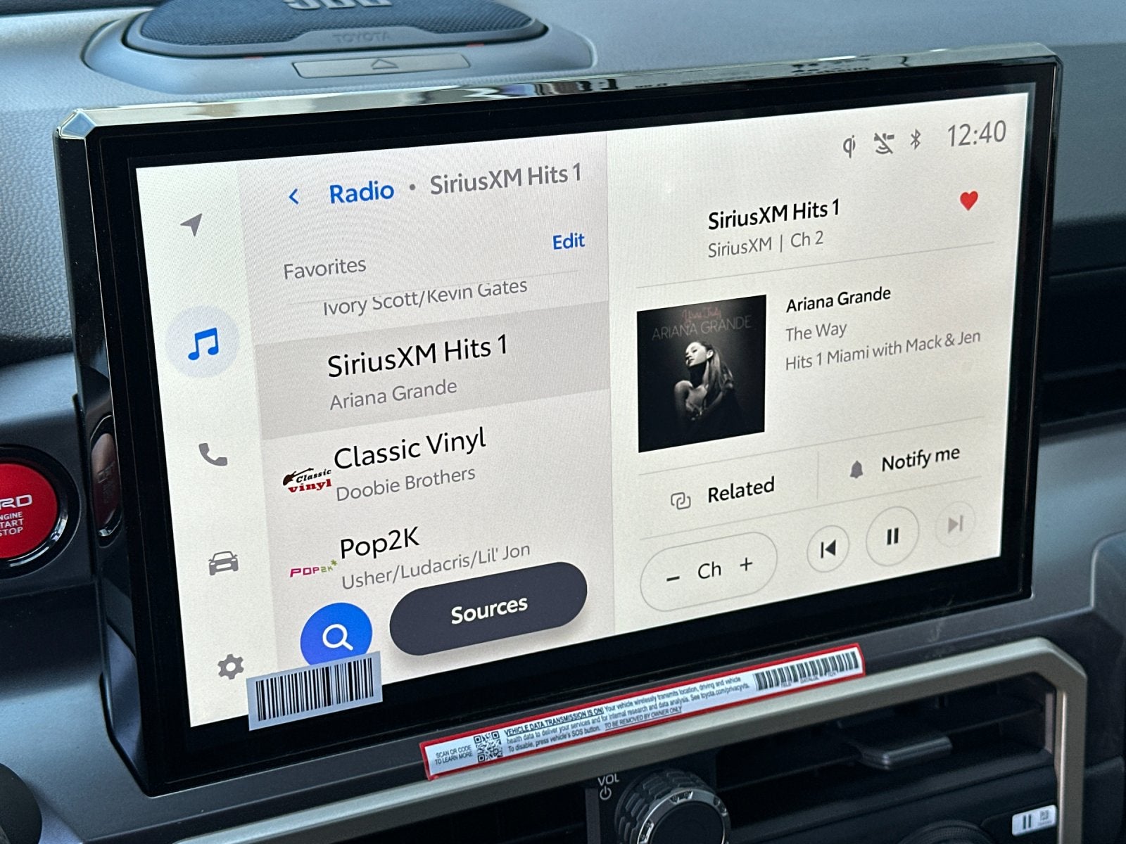 - 8-in. Toyota Audio Multimedia display with 6-speaker audio system, wireless Apple CarPlay® & Android Auto™ compatibility, SiriusXM® 3-month trial subscription. See toyota.com/connected-services for details.