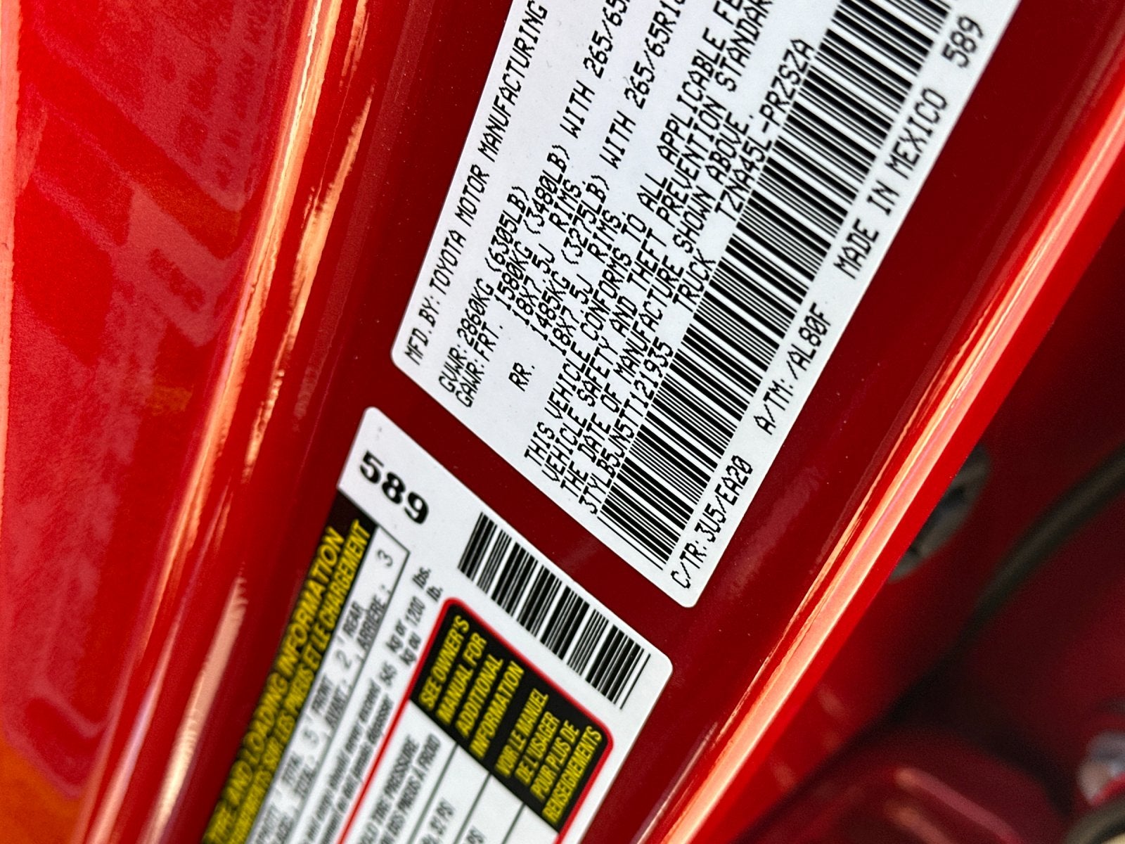 - Vehicle Name: Toyota Tacoma 4WD