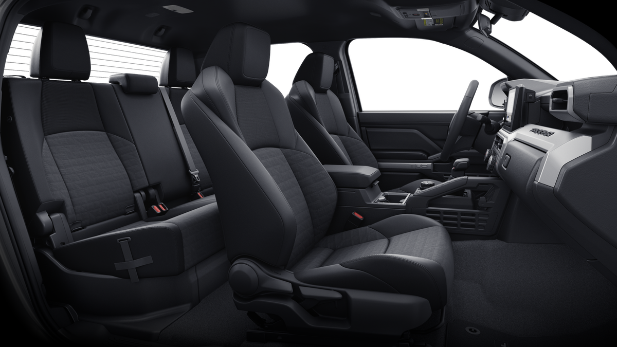 - Fabric-trimmed seats; 6-way manually adjustable driver and front passenger seats with 2-way power-adjustable lumbar support on driver's seat only