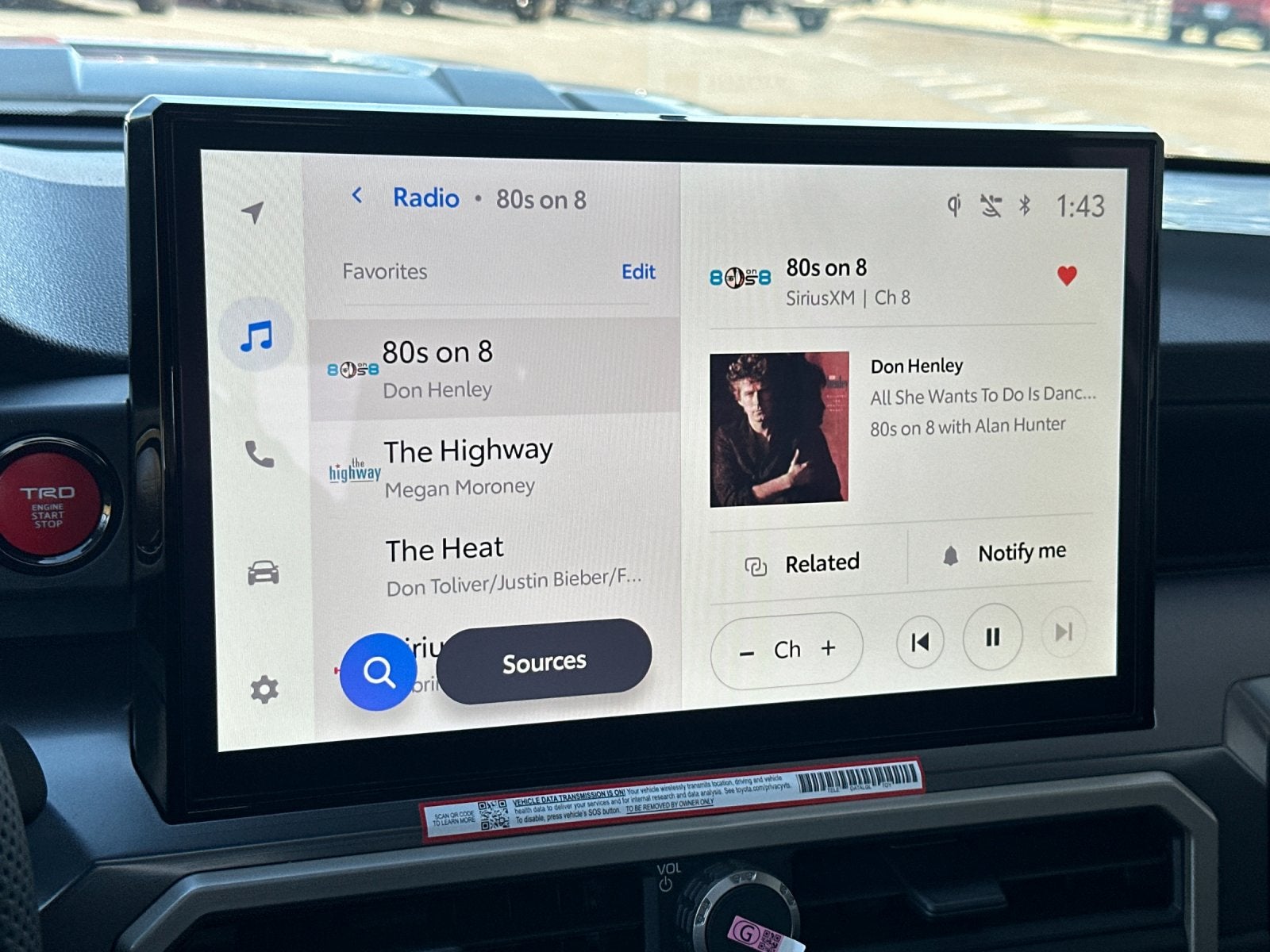 - Radio: 8" Toyota Audio Multimedia -inc: touchscreen, 6 speakers, wireless Apple CarPlay and Android Auto compatibility and SiriusXM w/3-month Platinum Plan trial subscription, See toyota.com/audio-multimedia for details