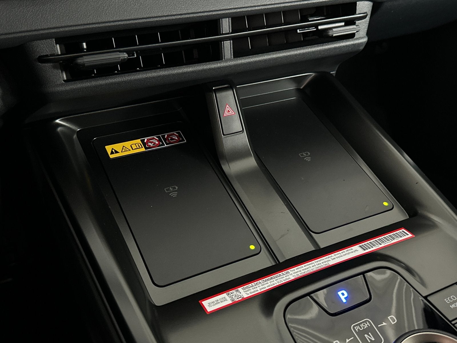 - Center console with covered storage compartment, two cup holders, two Qi-compatible wireless chargers and front lower storage tray