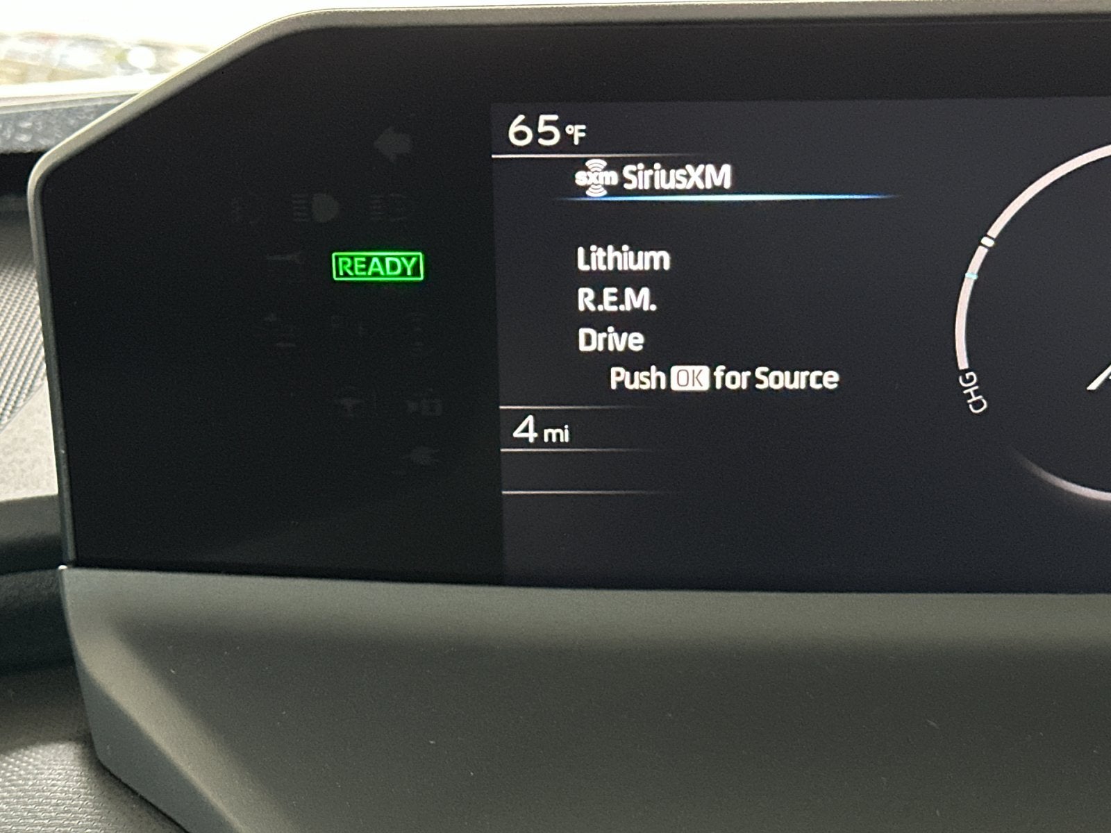 - Top-mount Multi-Information Display (MID) with indicators and 7-in. LCD display with speedometer, charge meter, power output meter, drive mode indicators, instrumentation and customizable settings, odometer, tripmeters, clock, outside temperature, rear passenger seatbelt indicators, fuel economy information, trip timer, charging information and settings, and warning messages