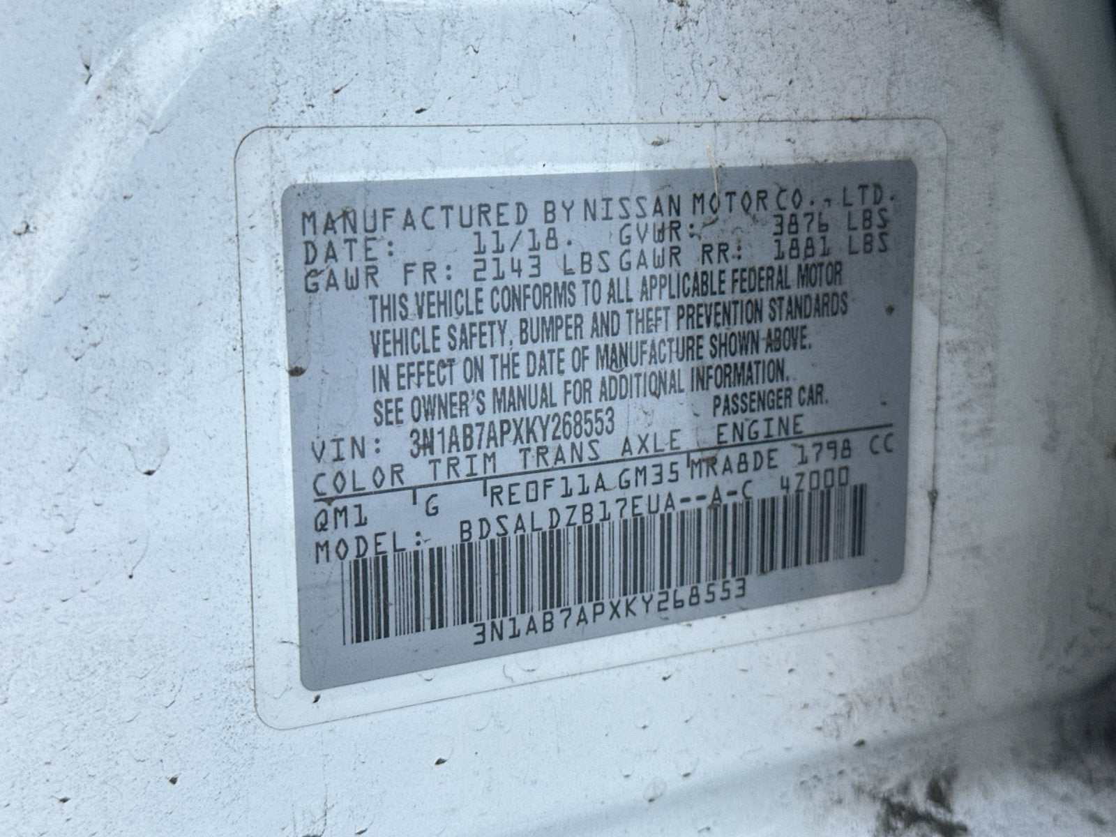 - Vehicle Name: Nissan Sentra