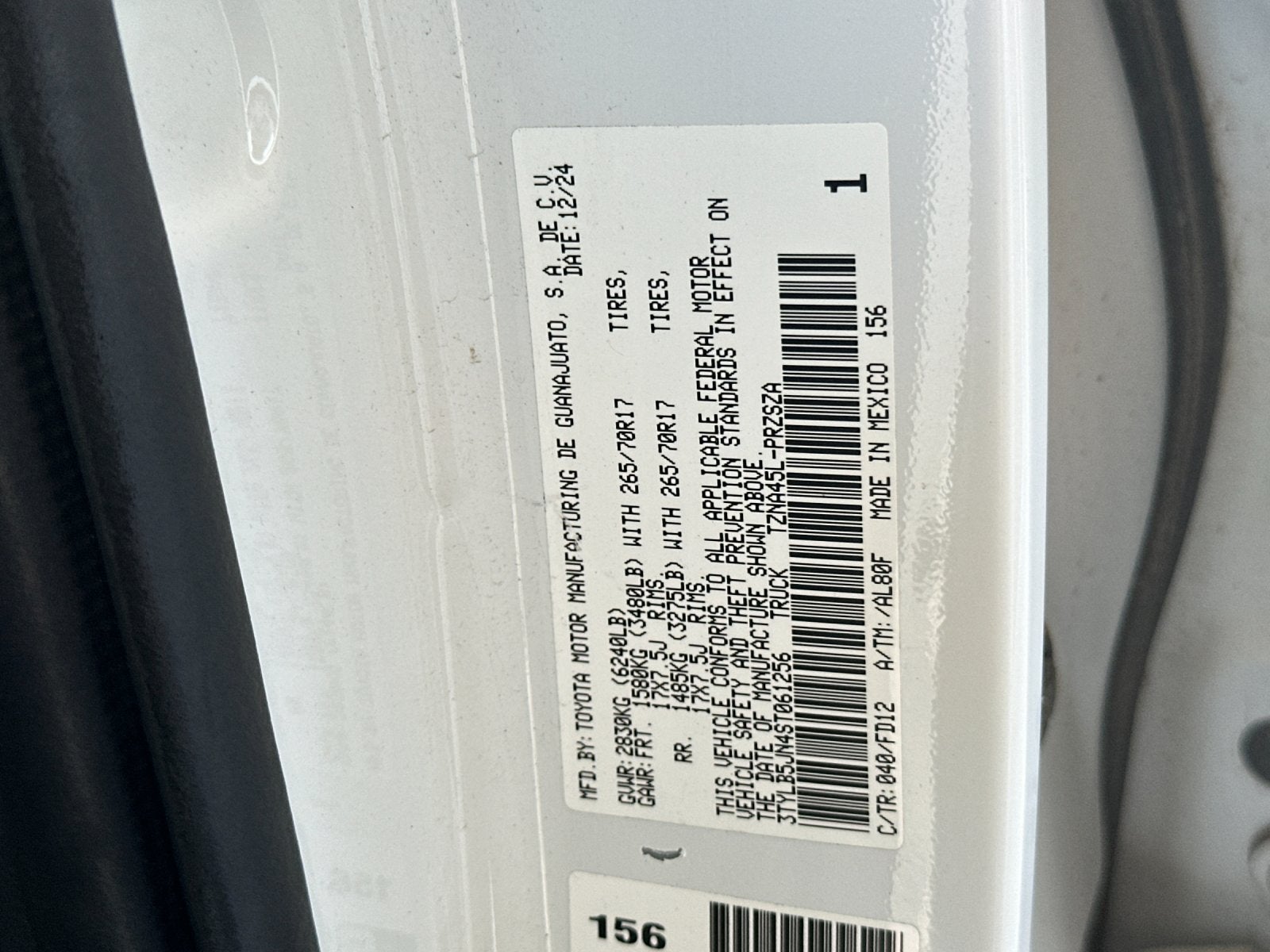 - Vehicle Name: Toyota Tacoma 4WD